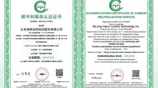 海林自控榮獲國家“碳中和服務認證證書”